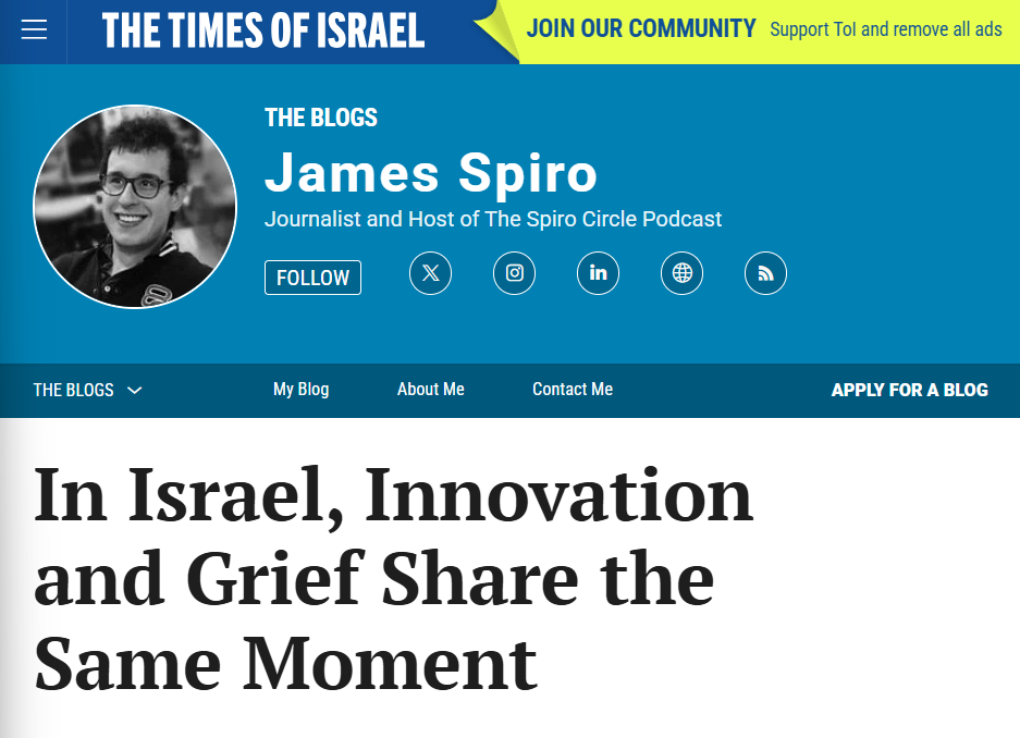 BLOG: In Israel, Innovation and Grief Share the Same Moment